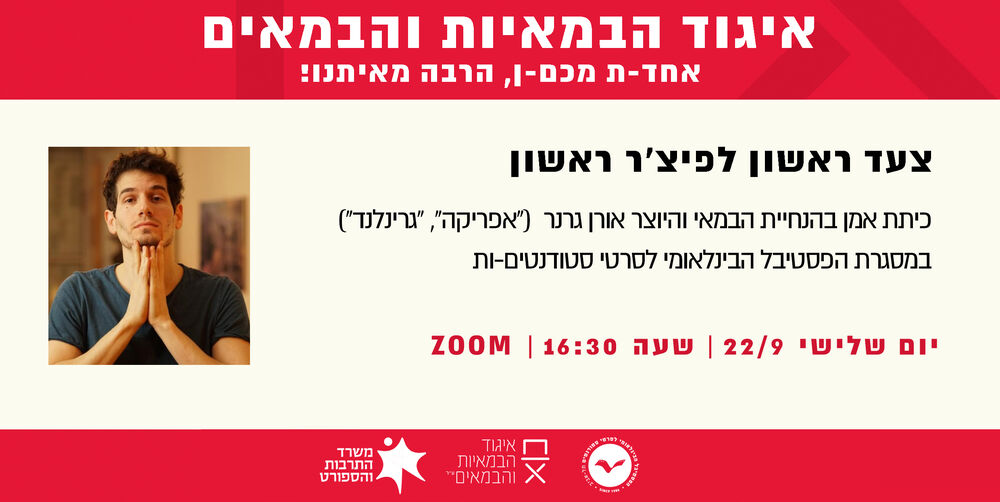 ב-22/9 | איגוד הבמאיות והבמאים, בשיתוף הפסטיבל הבינלאומי ה-22 לסרטי סטודנטים-ות, מזמין לכיתת אמן עם היוצר והבמאי אורן גרנר, עם כל מה שצריך לדעת לקראת הפיצ׳ר הראשון!