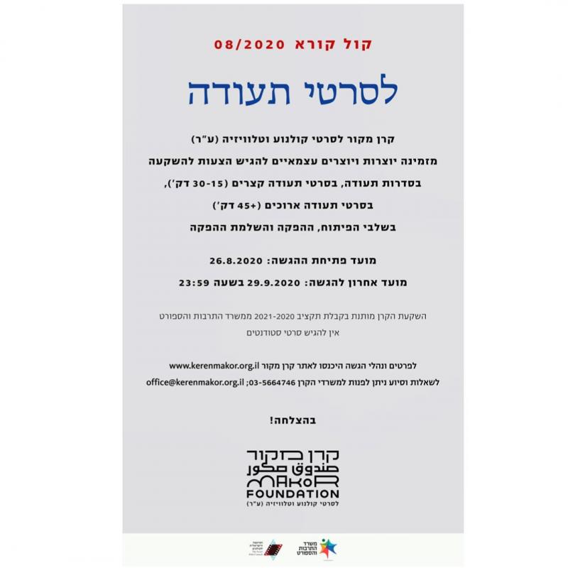קול קורא: סרטים וסדרות תיעודיים למסלול פיתוח, הפקה והשלמה | קרן מקור 8/2020