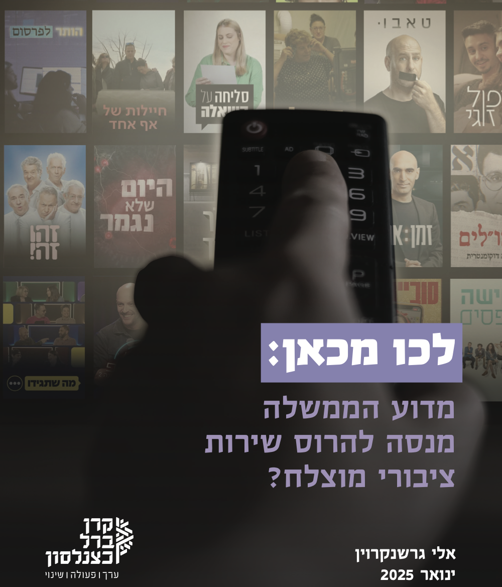 חומר למחשבה || מחקר חדש של קרן ברל כצנלסון מאת אלי גרשנקרוין: ”לכו מכאן – מדוע הממשלה מנסה להרוס שירות ציבורי מוצלח?” שמעלה שאלות חשובות על עצמאות, פוליטיזציה, ועתיד התקשורת הציבורית בישראל.