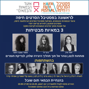 שיתוף פעולה של איגוד הבמאיות והבמאים עם פסטיבל הקולנוע הבינלאומי בחיפה מוזמנים להציץ אל מאחורי הקלעים של יצירה קולנועית – כשהתסריט עוד בחיתוליו והשחקנים.ות נותנים להם חיים על הבמה.
