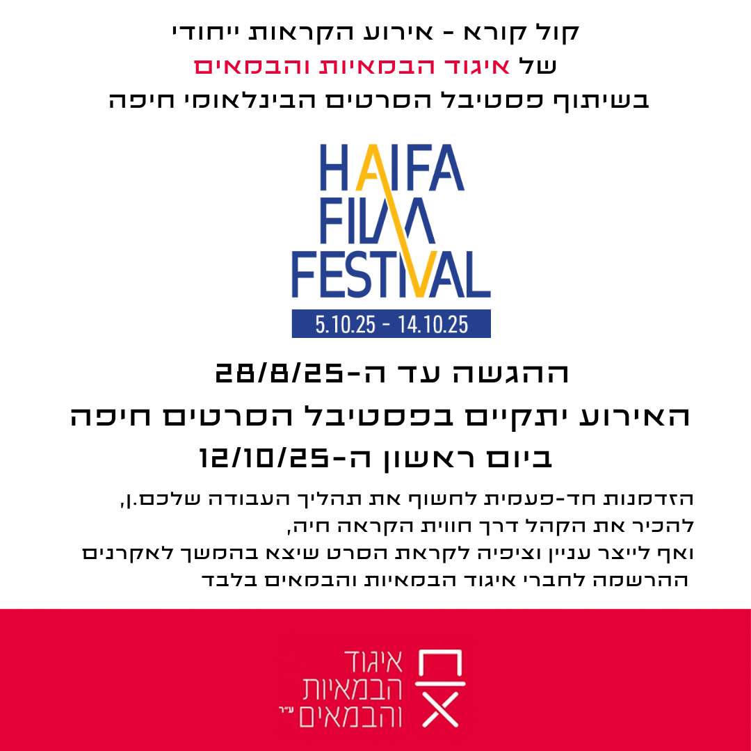 עד ה-28/8 || קול קורא – אירוע הקראות ייחודי של איגוד הבמאיות והבמאים בשיתוף פסטיבל הסרטים הבינלאומי חיפה