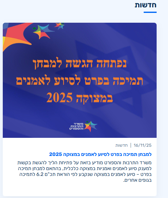 עד ה- 7/12 || קול קורא לסיוע לאמנים במצוקה כלכלית 2025 | משרד התרבות והספורט