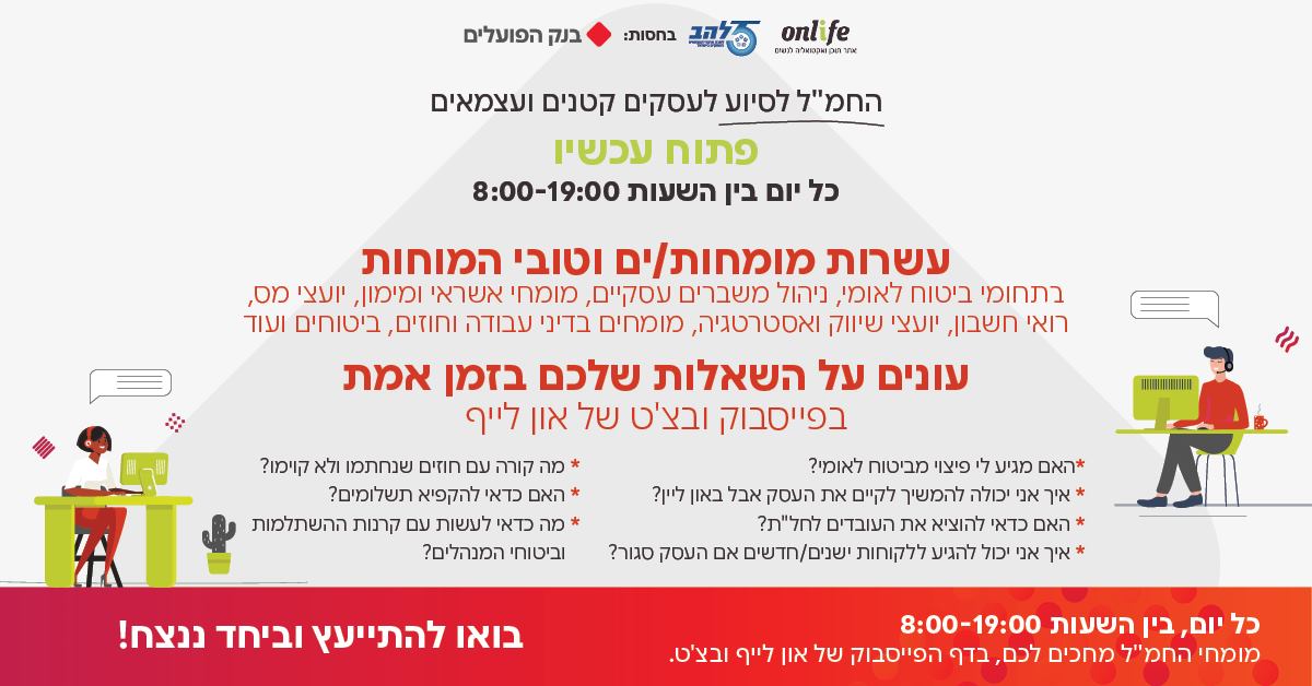 חמ״ל שאלות ותשובות מיוחד, ביוזמת לשכת לה״ב ואתר אונליייף, מתקיים עכשיו למשך יומיים של הסברה מרוכזת בנושא הלוואה בערבות מדינה.