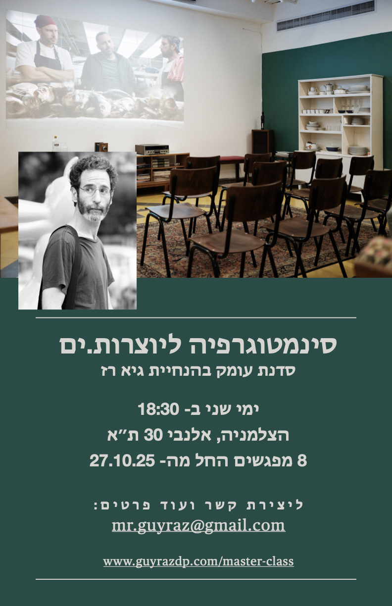 ימי שני החל מה-27/10, 18:30-21:00 || הטבה לחברים.ות: סינמטוגרפיה ליוצרות/ים – סדנת עומק בהנחיית גיא רז