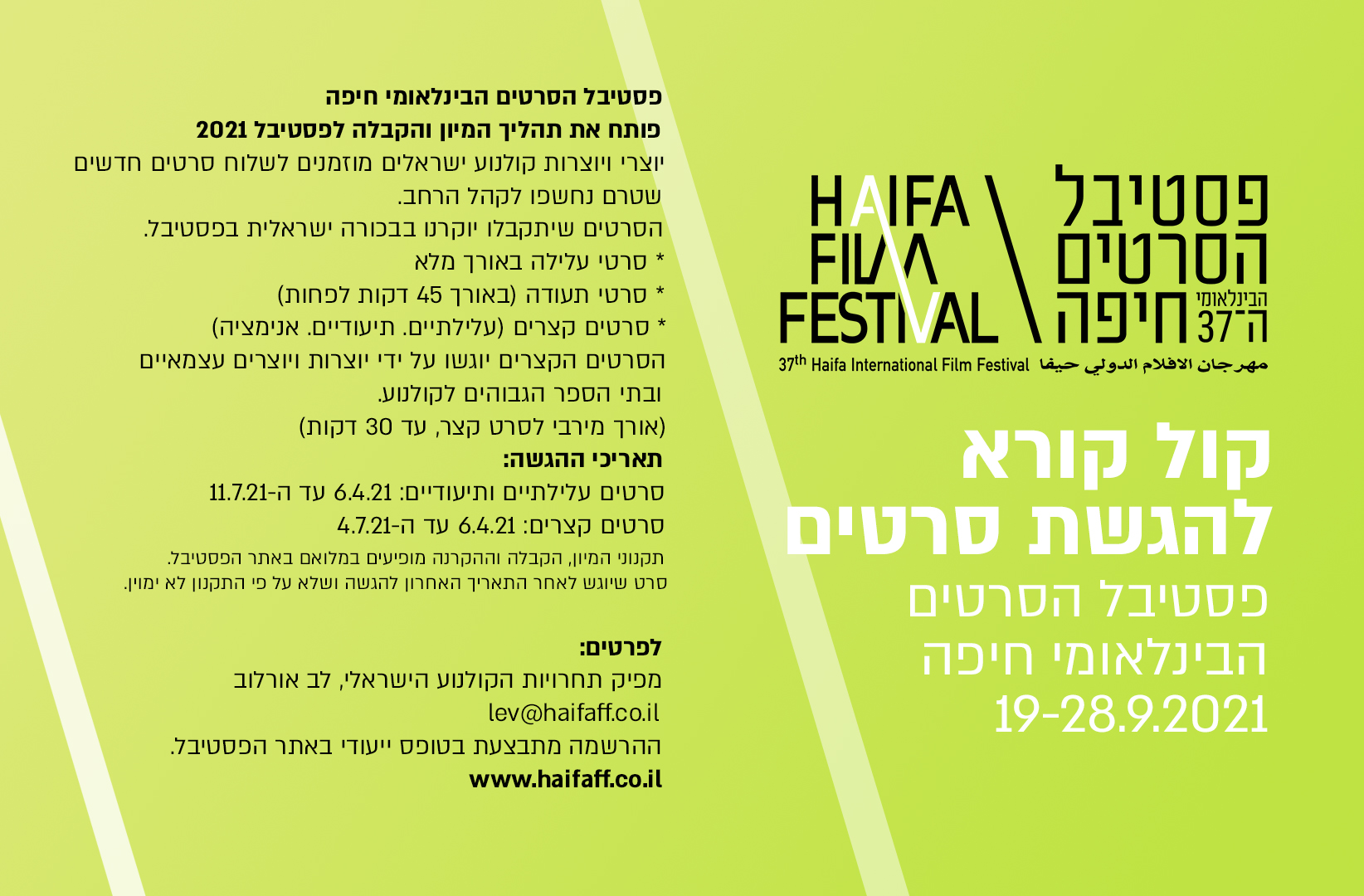 עד 4/7 ו-11/7 | פסטיבל הסרטים הבינ״ל חיפה ה-37 מזמין יוצרים-ות להגיש סרטים עלילתיים, תיעודיים וקצרים; שטרם נחשפו לקהל הרחב, למסגרות הישראליות.