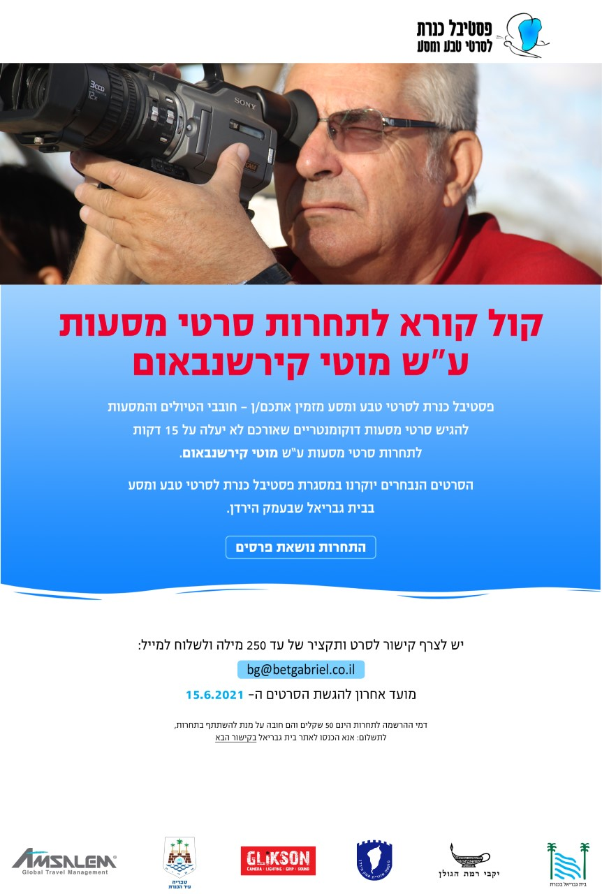 שימו לב, נדחה הדדליין! עד 15/6/21 | פסטיבל כנרת לסרטי טבע ומסע מזמין חובבי-ות טיולים ומסעות להגיש סרטי מסעות שאורכם לא יעלה על 15 דקות, לתחרות סרטי מסעות ע”ש מוטי קירשנבאום