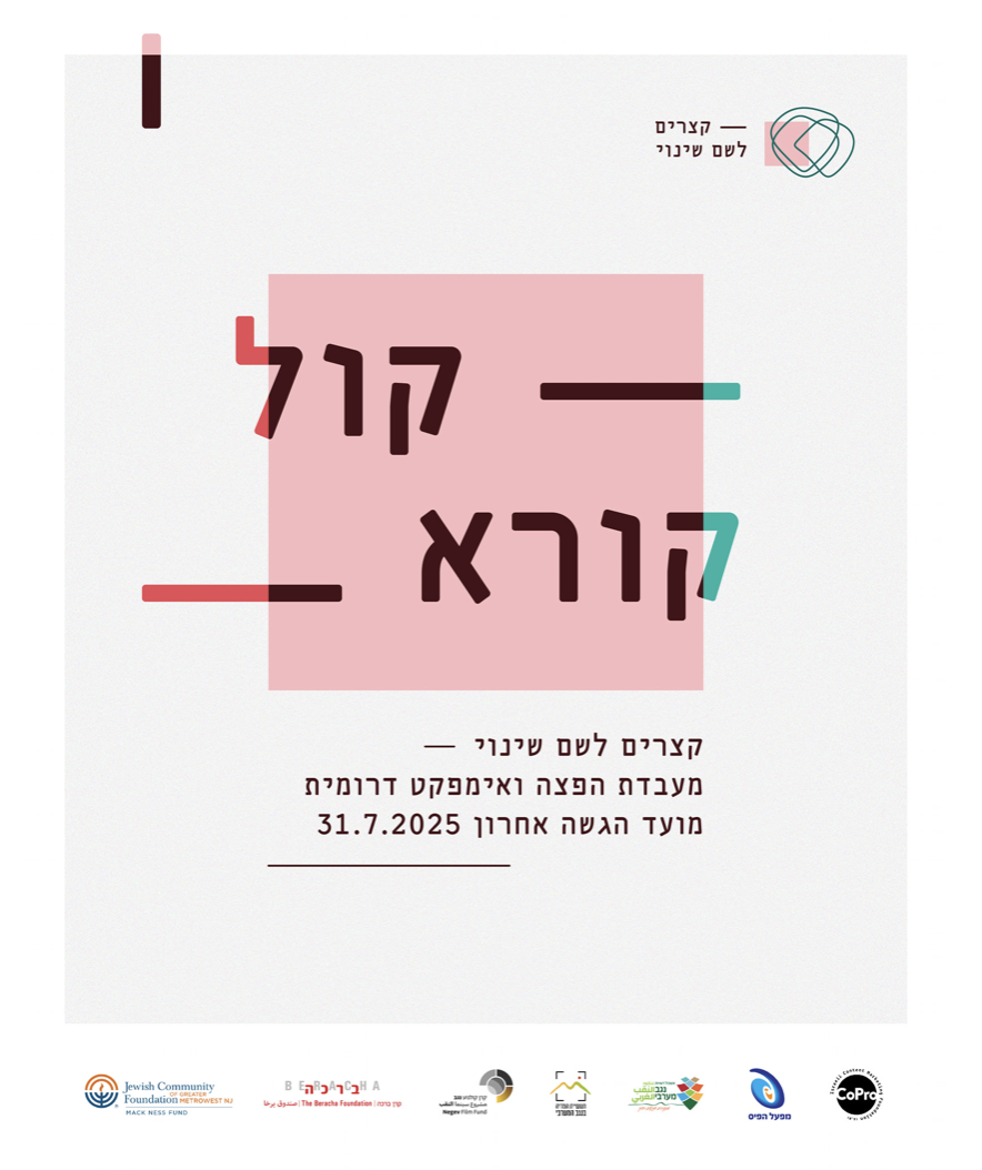 קופרו ממשיכה לתמוך ביצירה ישראלית שלא מפחדת להסתכל למציאות בעיניים ולייצר שיח של תקווה ופועלת לשינוי. אנחנו גאות להשיק קול קורא לתוכנית חדשה שתהווה מסגרת לסרטים קצרים השואפים ליצירת שינוי חברתי.על המעבדה: נפתחה ההגשה למעבדת הפצה ואימפקט חדשה לקולנוע קצר בדרום, ביוזמת קרן קופרו, בשיתוף מנהלת המדיה של אשכול נגב מערבי, קרן קולנוע נגב ובתמיכת מפעל הפיס. התכנית נועדה לליווי סרטים קצרים בבניית אסטרטגיית הפצה ממוקדת וקמפיין אימפקט – תהליך שמטרתו להרחיב את ההשפעה של היצירה על השטח. מי יכול להגיש: המעבדה פתוחה לסרטים תיעודיים, עלילתיים או אנימציה (עד 30 דקות), שנמצאים בשלבי הפקה מתקדמים עם תמיכת גוף שידור/קרן קולנוע – או סרטים גמורים שהושלמו לאחר יוני 2024 ושטרם הופצו. מוזמנים להגיש יוצרות ויוצרים תושבי הדרום, או כאלה שעוסקים בסיפורים מהדרום. מה כולל הליווי: במהלך התכנית יזכו 5–7 פרויקטים לליווי אישי של צוות מקצועי, ילמדו כיצד למקד את מטרות הסרט, לזהות את קהלי היעד, ליצור שיתופי פעולה ולהפיץ את הסרט דרך ערוצים שונים – כדי לעורר שיח, יוזמה או פעולה בעזרת הסרט. מועד אחרון להגשה: 31.7.25 פרטים נוספים והגשה |
