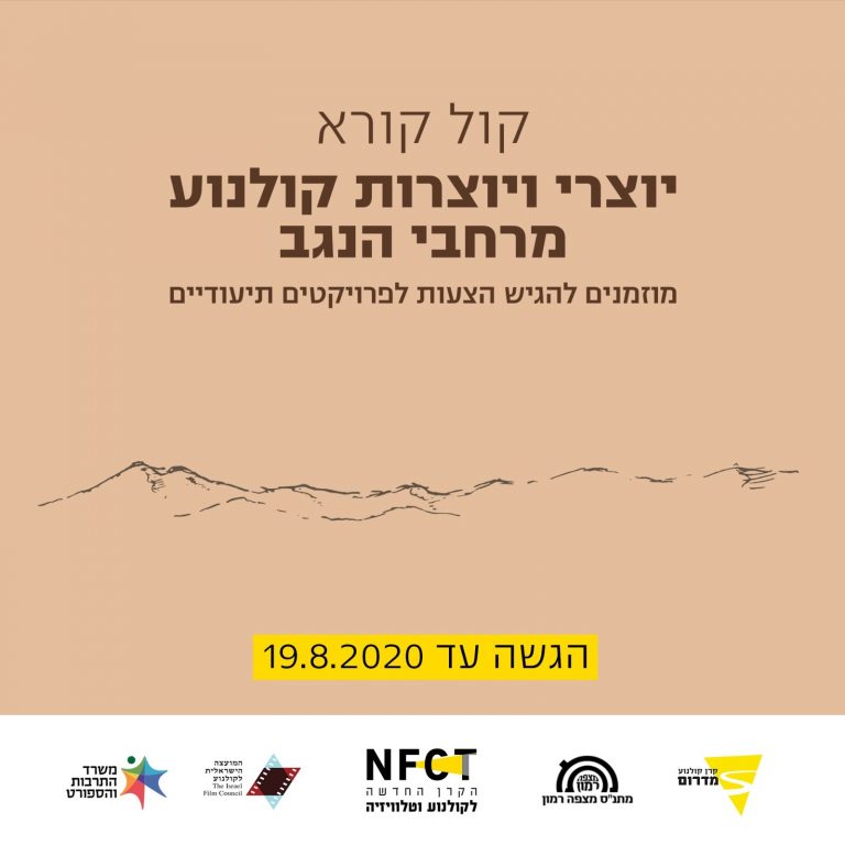 עד 19/8 | יוצרי ויוצרות קולנוע מרחבי הנגב מוזמנים-ות להגיש הצעות לסרטים תיעודיים ארוכים וקצרים ולסדרות רשת תיעודיות, במסלולי פיתוח, הפקה והשלמת הפקה