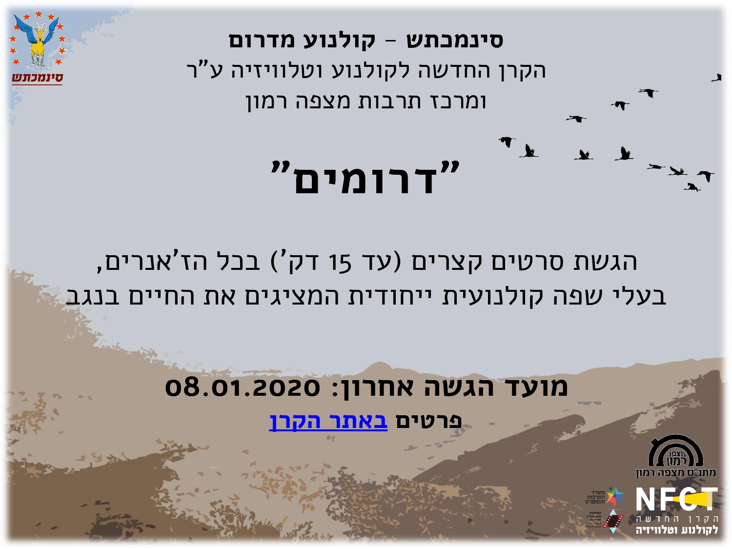 קול קורא: סרטים קצרים מאיזור הנגב | מועד “דרומים”