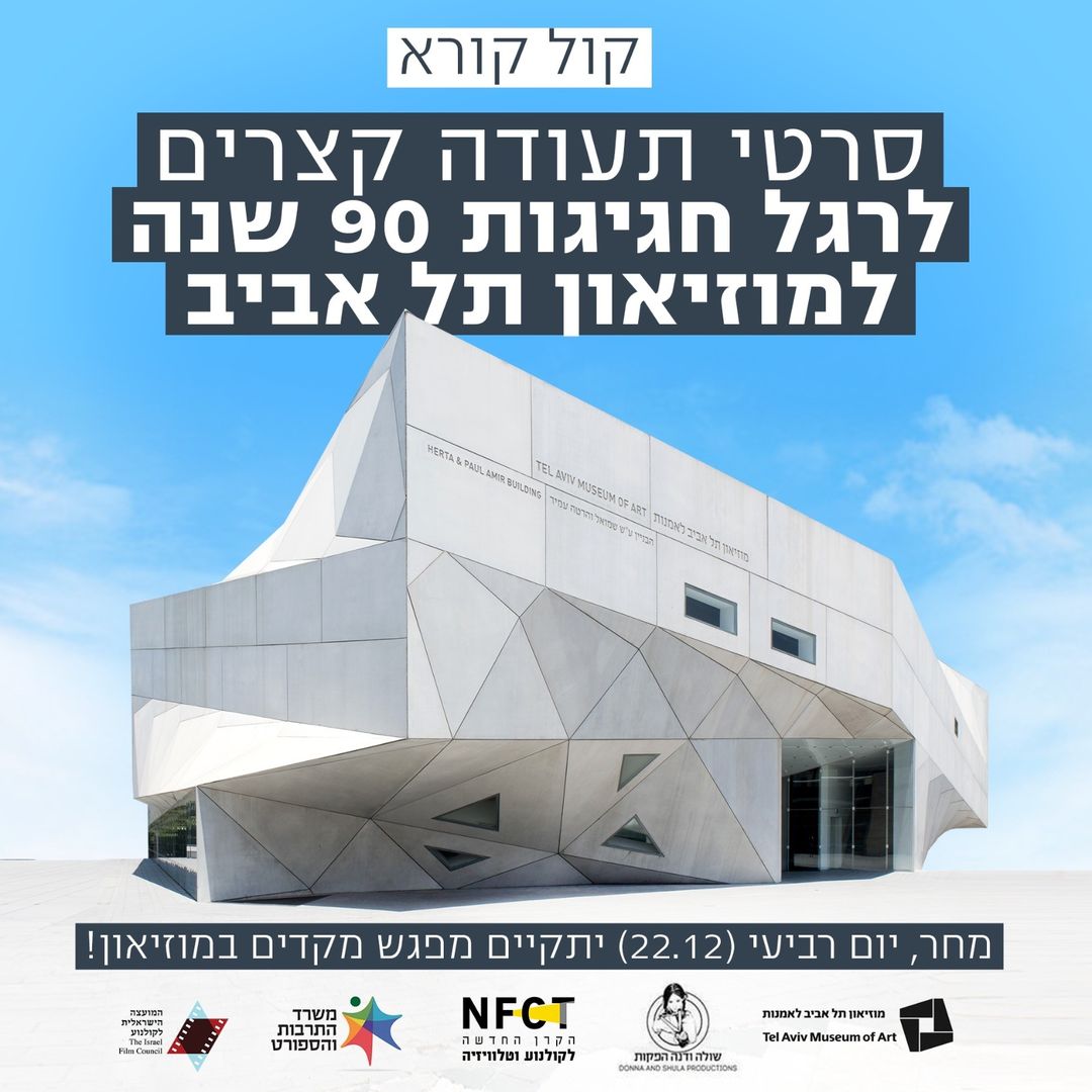 נדחה הדדליין: עד 23/1 | במלאות 90 שנה להיווסדו של מוזיאון תל אביב לאמנות, הקרן החדשה לקולנוע וטלוויזיה ומוזיאון ת״א מזמינים יוצרי-ות קולנוע להגיש הצעות לסרטי תעודה קצרים באורך של 15 – 20 דקות, העוסקים במרקם התרבותי של המוזיאון.