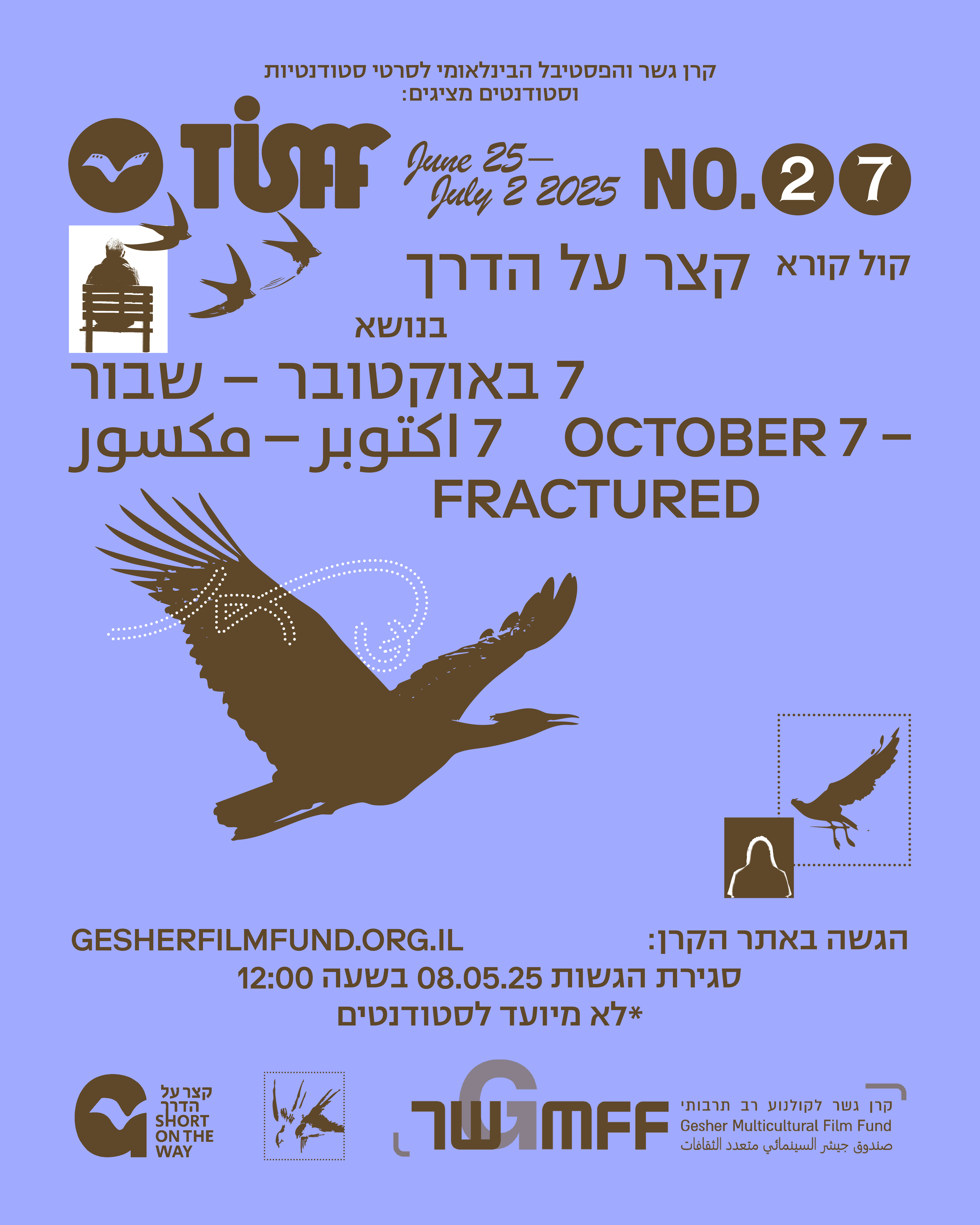 קרן גשר לקולנוע רב תרבותי והפסטיבל הבינלאומי ה-27 לסרטי סטודנטיות וסטודנטים מכריזים על קול קורא למיזם קצר על הדרך בנושא “7 באוקטובר – שבור”.