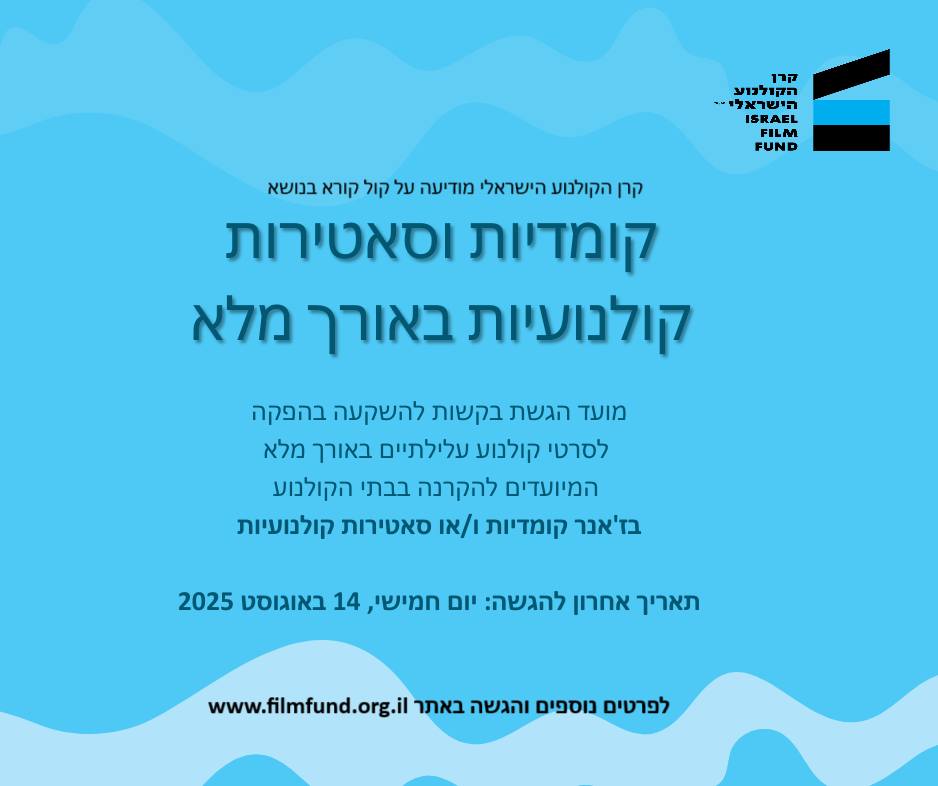 עד ה-14/8/25 || קול קורא: הגשת בקשות קומדיות וסאטירות קולנועיות באורך מלא | קרן הקולנוע הישראלי