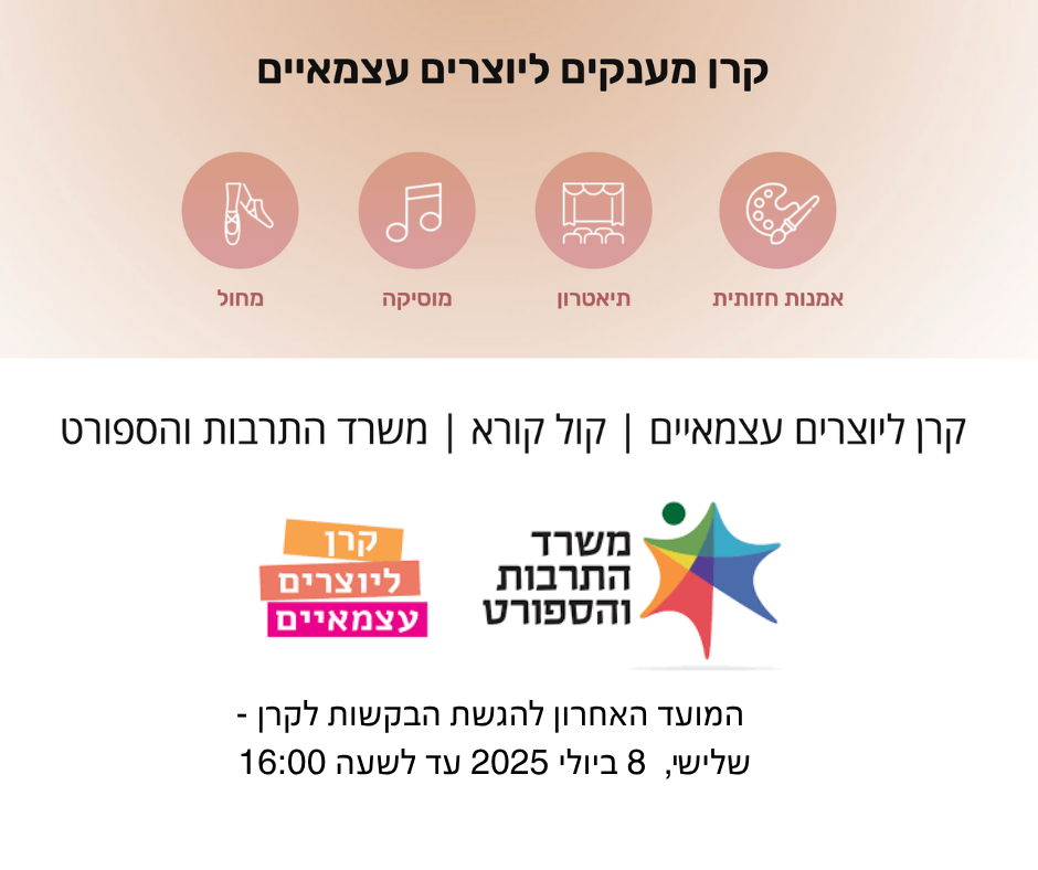 עד ה-8.7.25 || קול קורא: הגשת בקשות למענקים ליוצרים.ות עצמאיים.ות 2025 || משרד התרבות והספורט