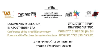 במסגרת אירועי פסטיבל הקולנוע ירושלים (25/7-4/8) יקיימו הפורום הדוקומנטרי בישראל ומכון ון ליר בירושלים בשיתוף קרן גשר לקולנוע רב תרבותי, יום עיון בנושא: היצירה הדוקומנטרית בעידן של פוסט-אמת. הכניסה חופשית