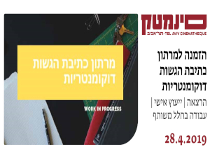 הפורום הדוקומנטרי בישראל בשיתוף סינמטק תל-אביב, מזמינים למרתון כתיבת הגשות דוקומנטריות. המרתון שיכלול הרצאה, ייעוץ אישי ועבודה בחלל משותף, יתקיים ב-28/4/19